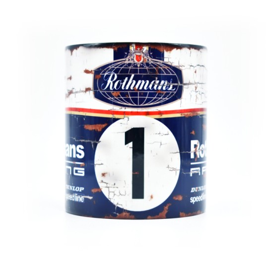 Inspired by the blue and white oil splattered livery of Jackie Stewart's Tyrrell our mug is an eye c..