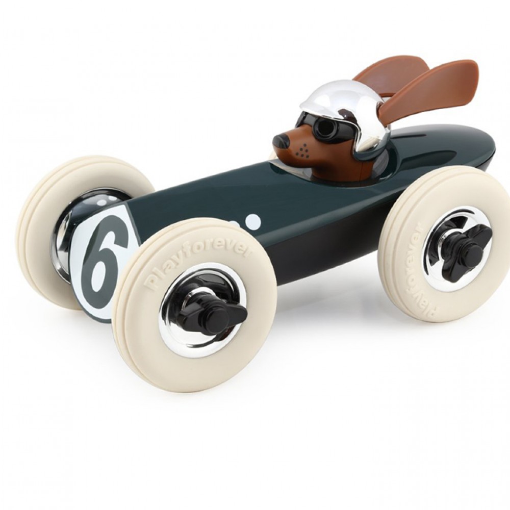 Be a top dog with Rufus in his british racing green racer, going so fast his ears are flying!